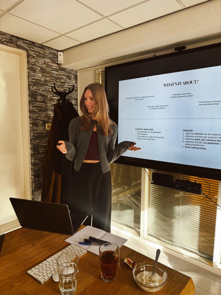 The design phase followed a Scrum approach, consisting of three iterations of two weeks. Each iteration focused on designing, prototyping and testing. This iterative setup allowed for quick adjustments based on feedback from stakeholders.